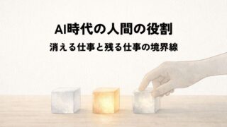 コラム AI時代の人間の役割|消える仕事と残る仕事の境界線 AIに仕事を奪われる不安がある人へ。AI時代の人間の役割を整理し、消える仕事と残る仕事の境界線を解説します。AIにできること・人間に残る役割・これから伸ばすべき力を確認してください。 2026.03.18 コラム